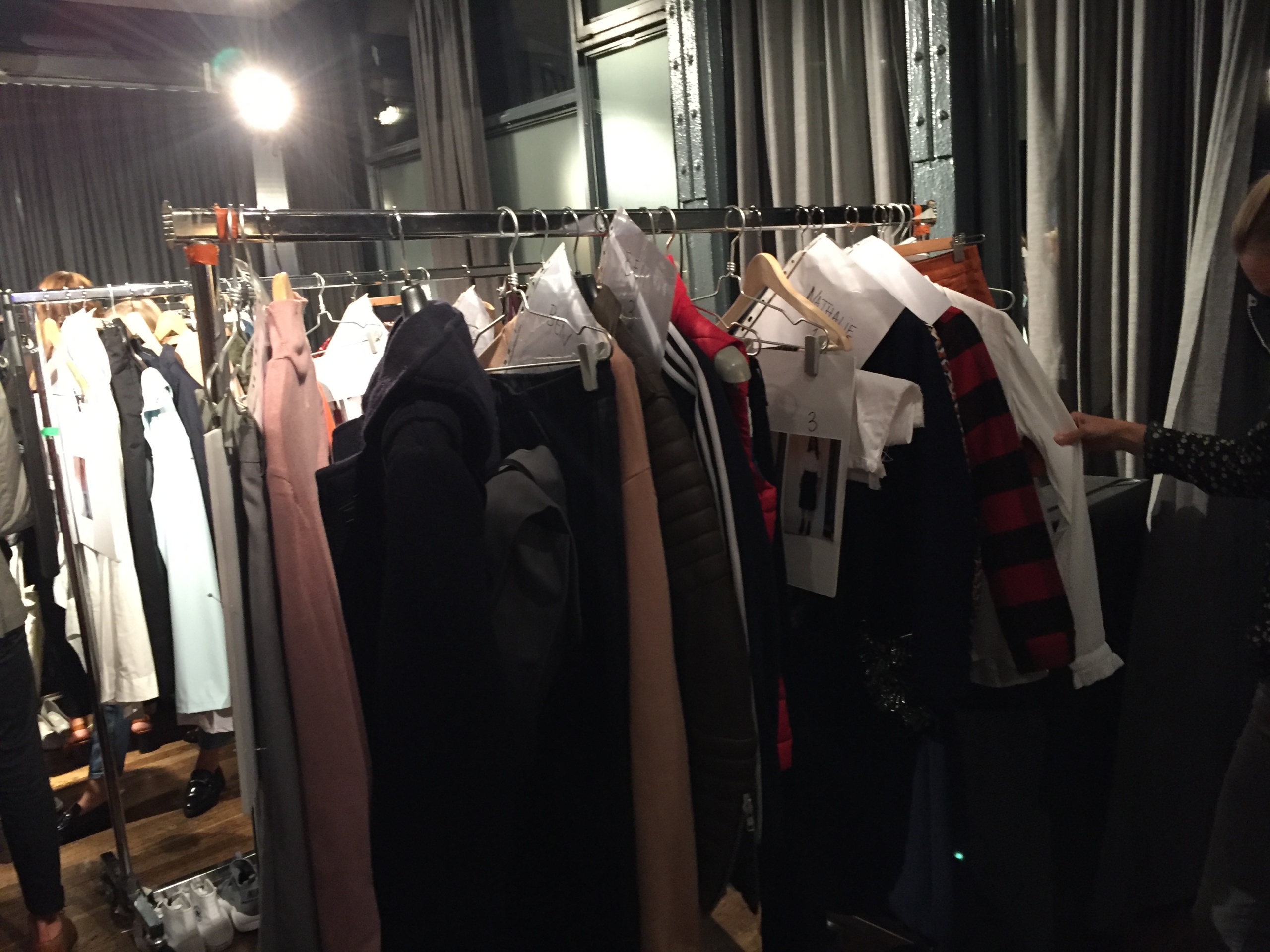 Efter visningen så fick vi gå backstage och klämma och känna på alla kläder, vilket jag tyckte var kul! Där fastande jag för en marinblå klänning med guld-rektanglar;)