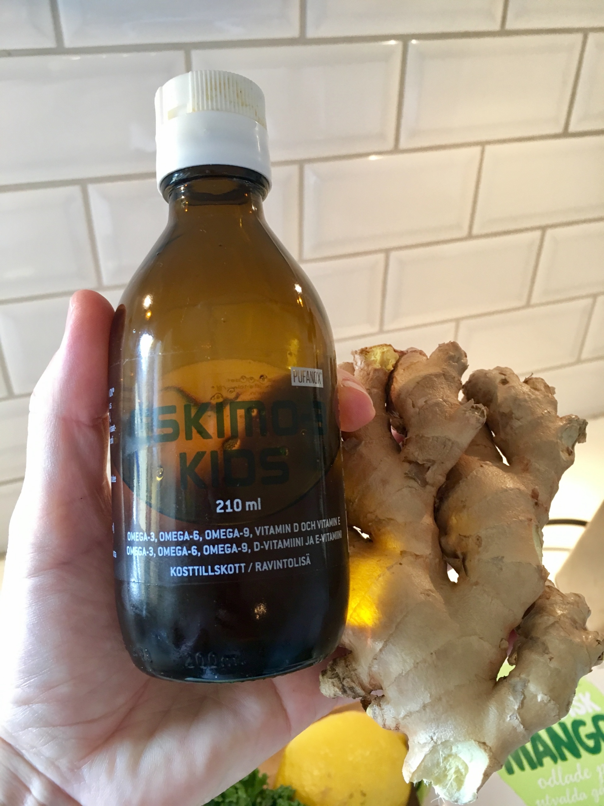 (I förkylningstider blandar jag även ned ingefära och gurkmeja till oss vuxna).